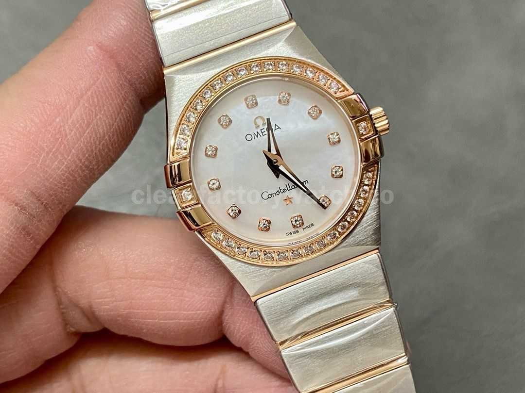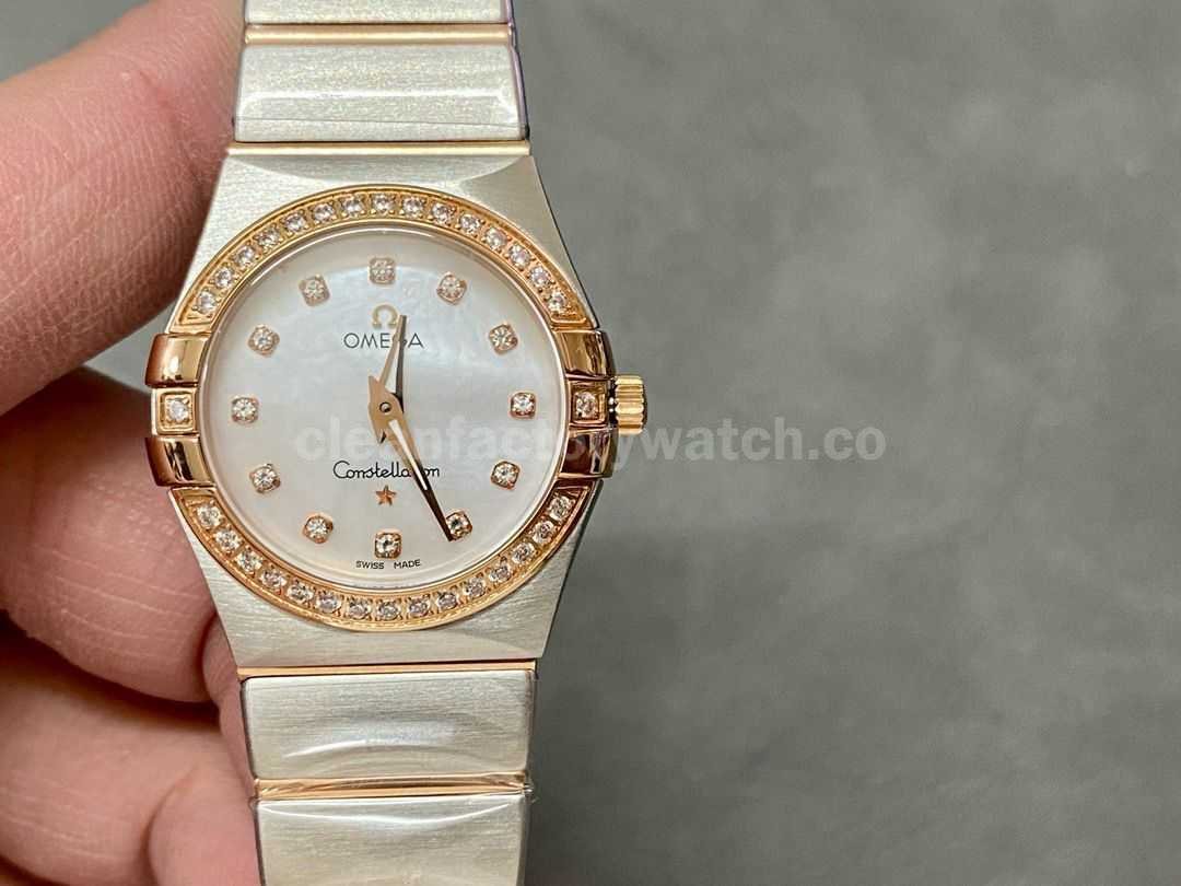 TW Factory Omega Constellation Quartz 123.25.27.60.55.007 27mm Diamond&Rose Gold Bezel Half Rose Gold Steel Mother Of Pearl Diamond Dial