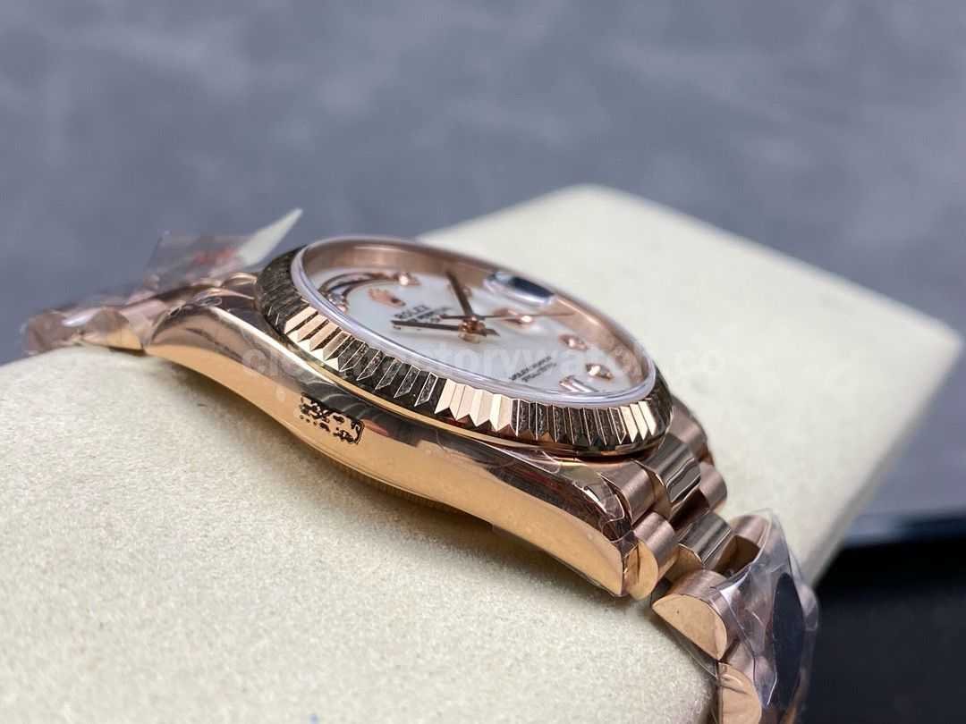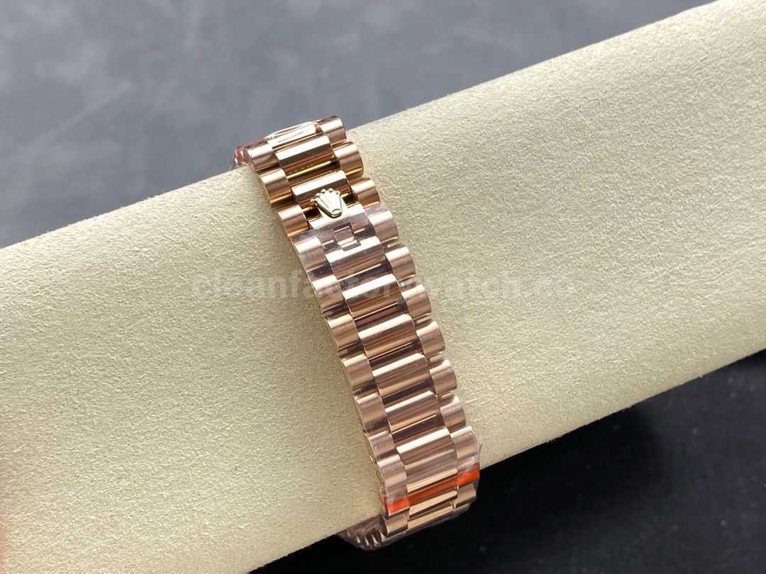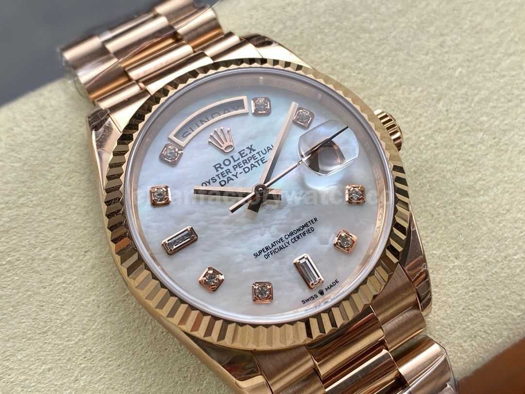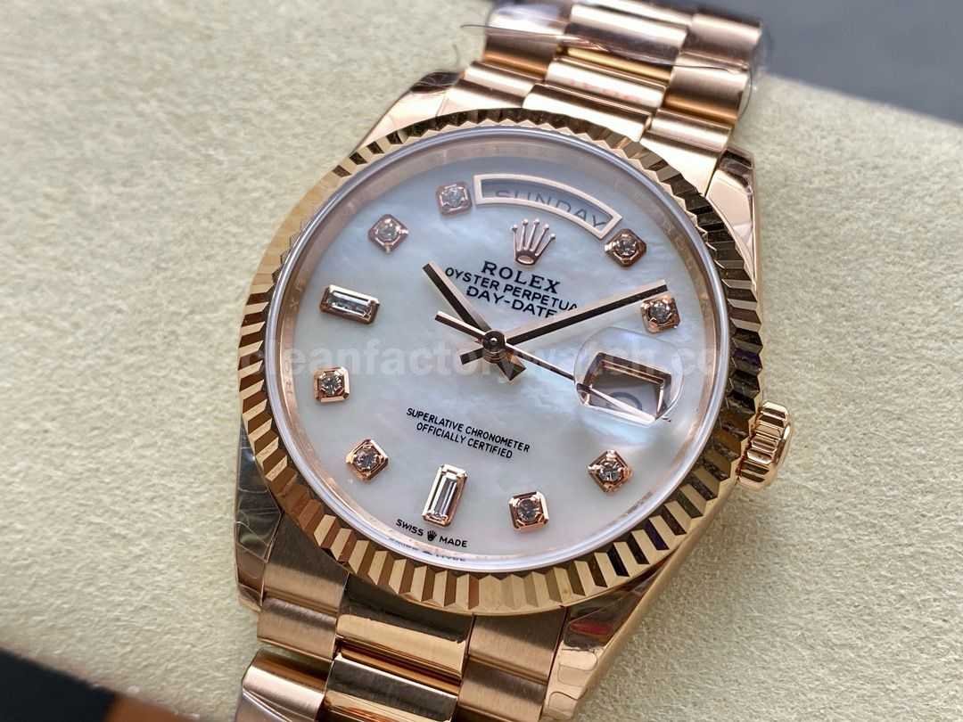 8+ Factory Counterweight Rolex Day-Date 128235-0029 36mm Full Rose Gold Diamond Mope Baguette Diamond Mother Of Pearl Dial