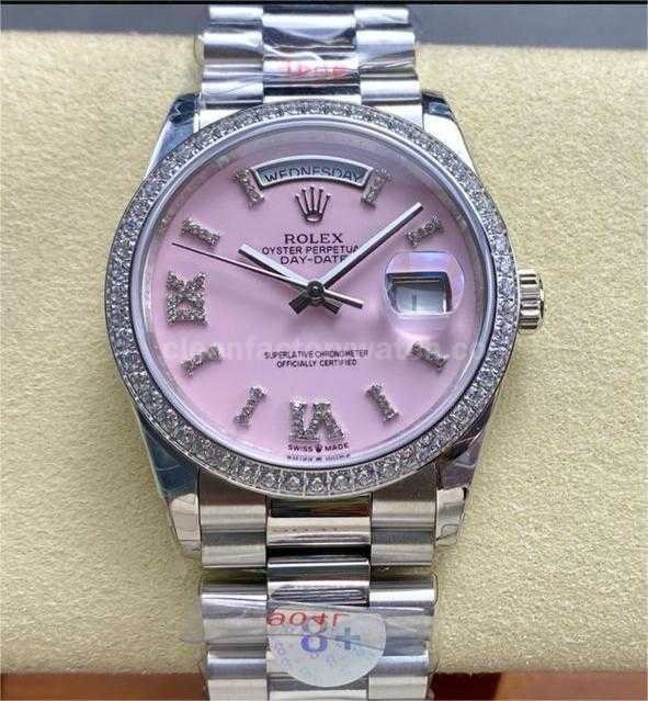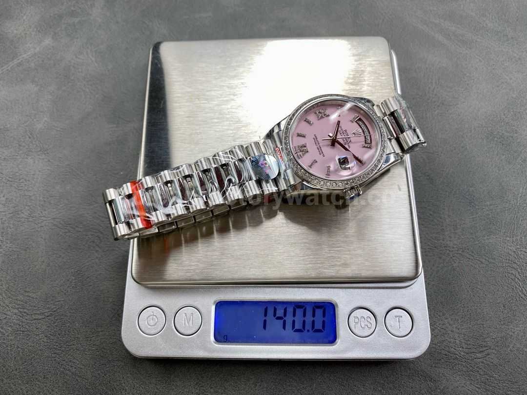 8+ Factory Counterweight Rolex Day-Date 128349RBR-0008 36mm Diamond Bezel Full 904L Roman Number Pink Dial