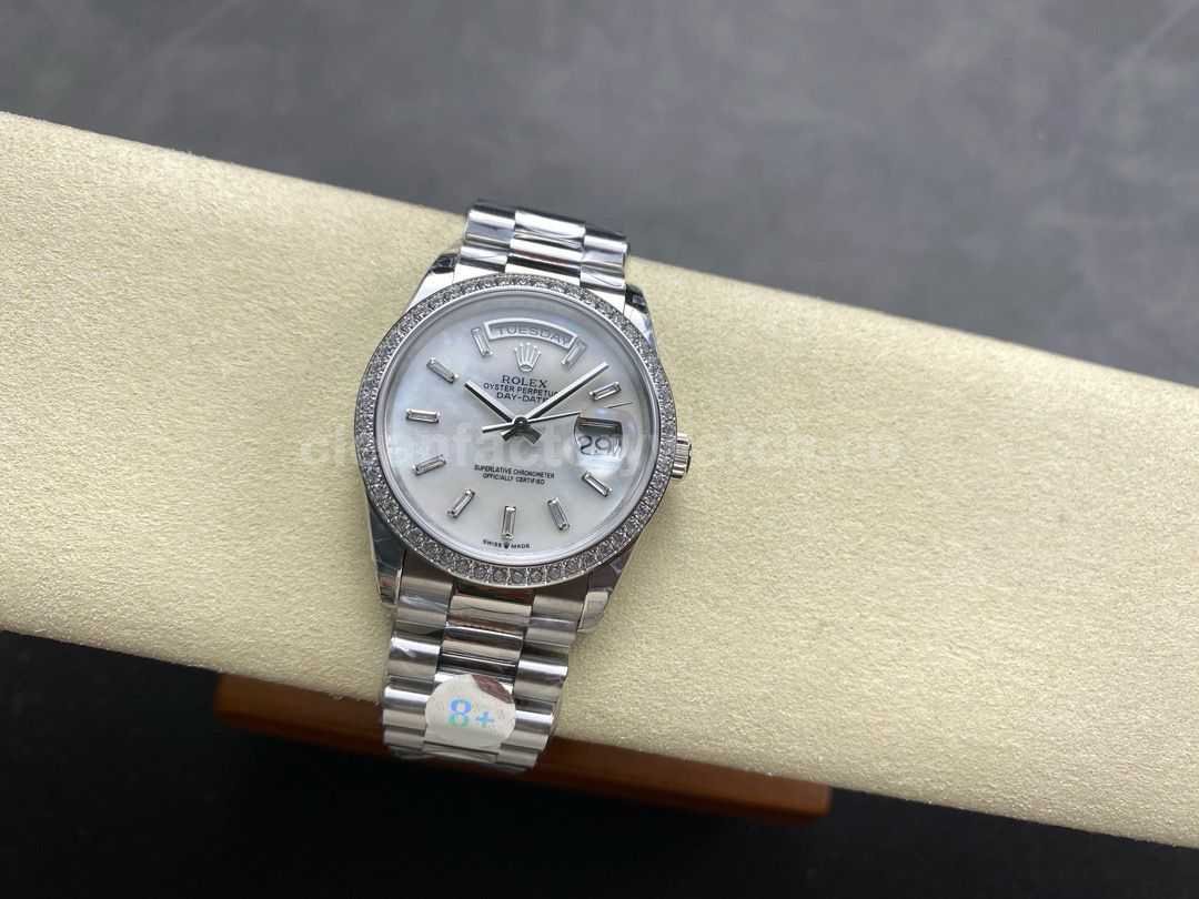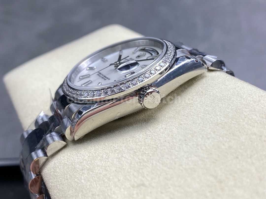 8+ Factory Counterweight Rolex Day-Date 128349RBR-0049 36mm Diamond Bezel Full 904L Baguette Diamond Mother Of Pearl Dial