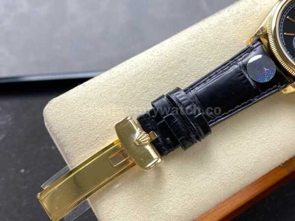 8+ Factory Rolex 1908 52508-0002 39mm Yellow Gold Leather Strap Arabic Numerals Black Dial