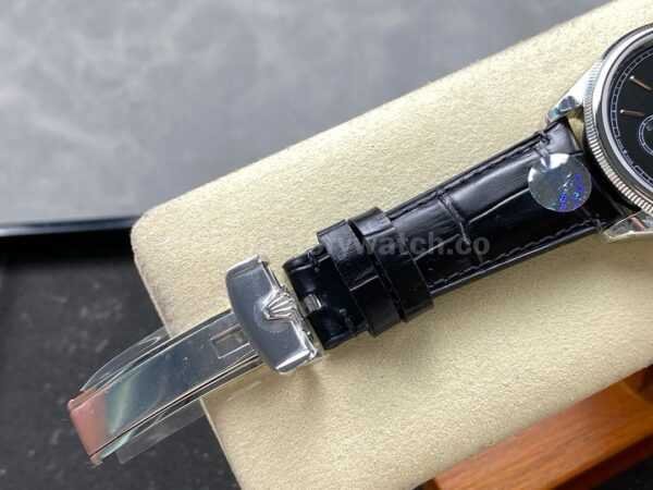 8+ Factory Rolex 1908 52509-0002 39mm Steel Leather Strap Arabic Numerals Black Dial
