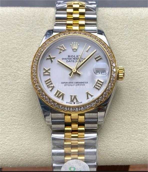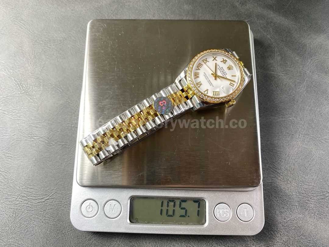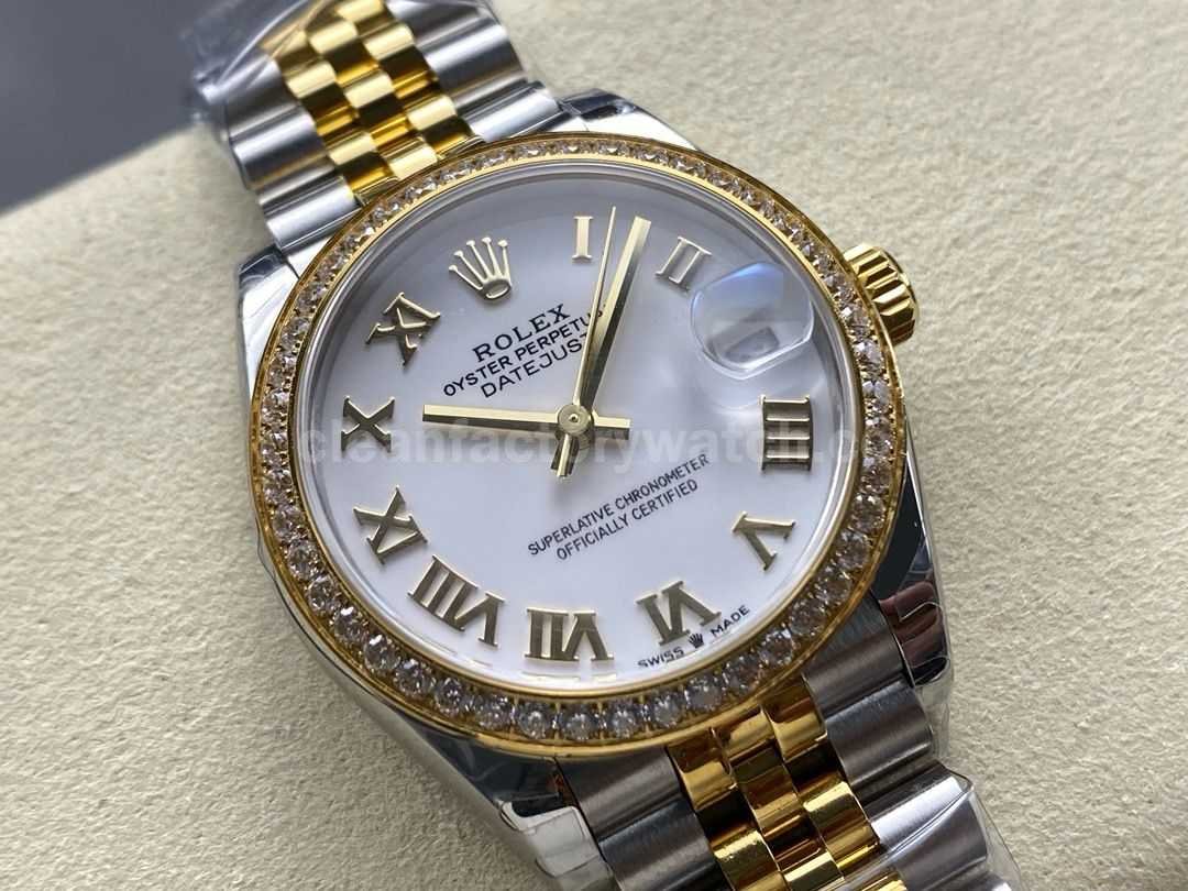 8+ Factory Rolex counterweight Datejust 278383RBR-0002 31mm Diamond Yellow Gold Bezel Half Yellow Gold Roman Numerals White Dial Jubilee