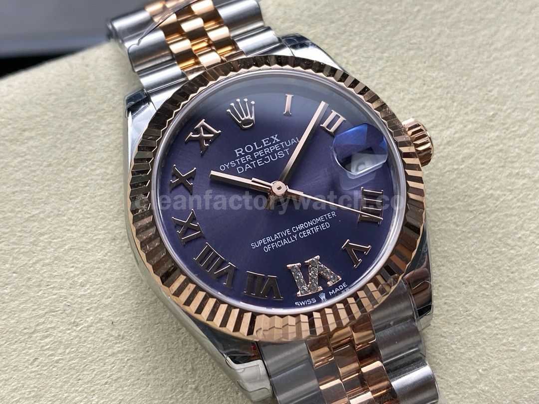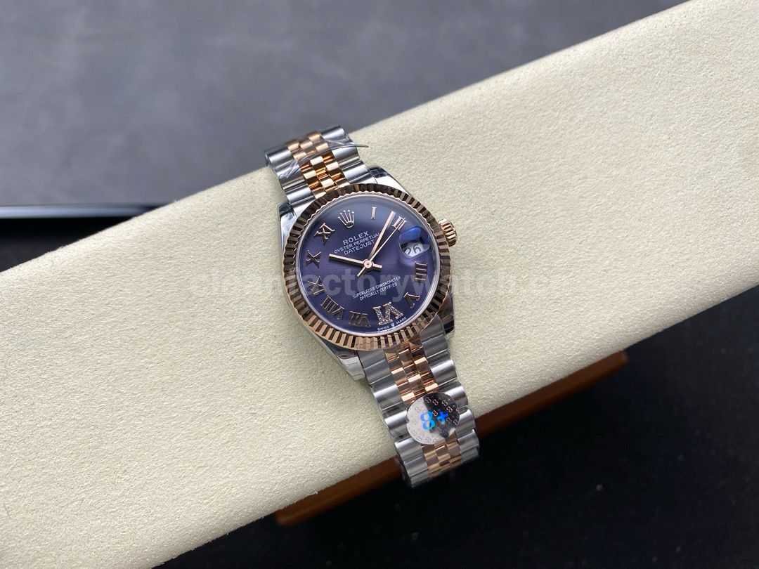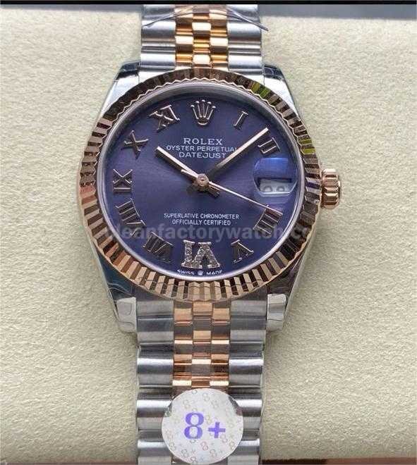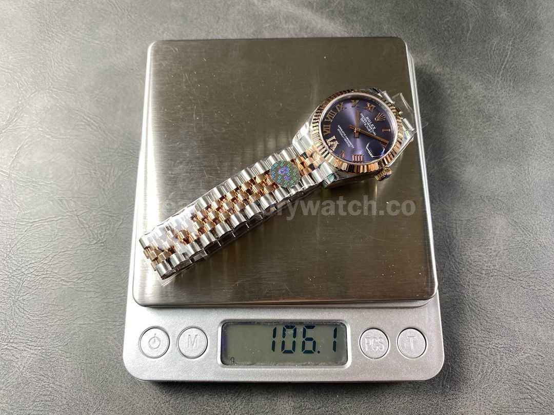 8+ Factory Rolexcounterweight Datejust 278271-0020 31mm Half Rose Gold Roman Numerals Diamond Purple Dial Jubilee
