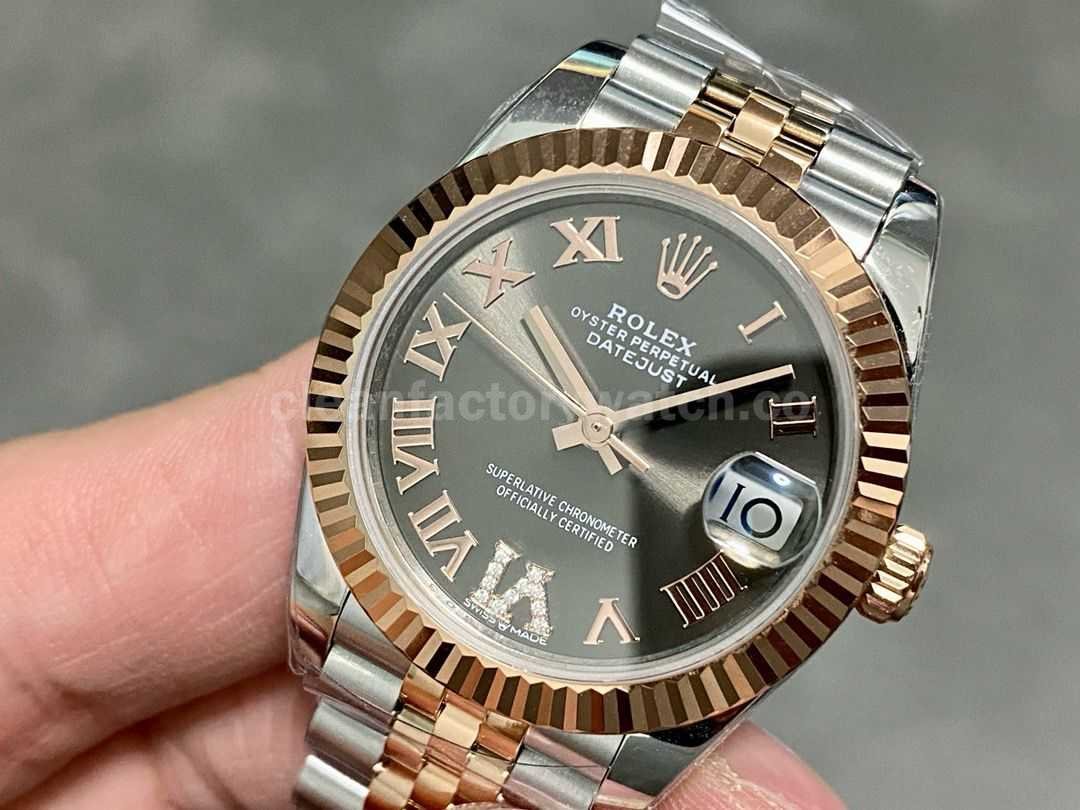 A+ Factory Rolex Datejust 278271-0030 31mm Half Rose Gold Roman Numerals Diamond Grey Dial Jubilee
