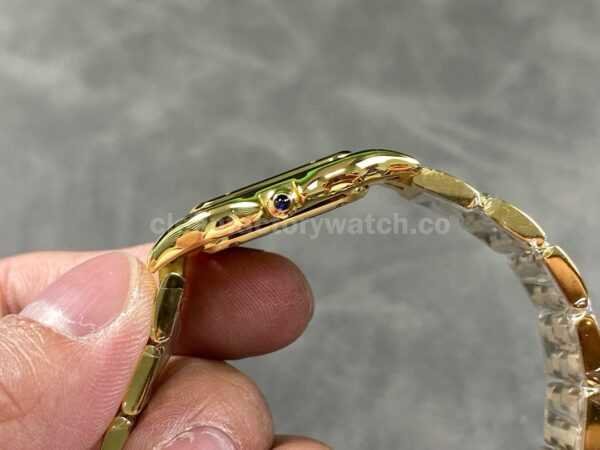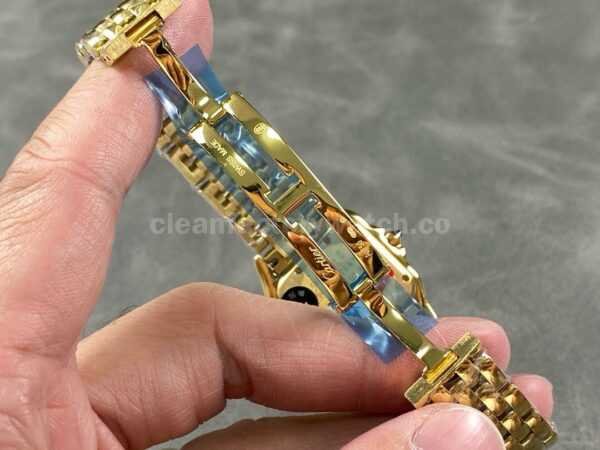 The watch’s stainless steel bracelet undergoes meticulous polishing, resulting in a silky-smooth texture. Each link is precisely crafted to ensure exceptional comfort, fitting snugly around the wrist like a panther gliding across the skin. The bracelet’s distinctive design perfectly complements the elegant curves of the case, enhancing the watch’s overall sophistication and charm.