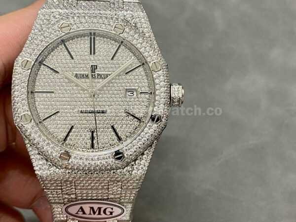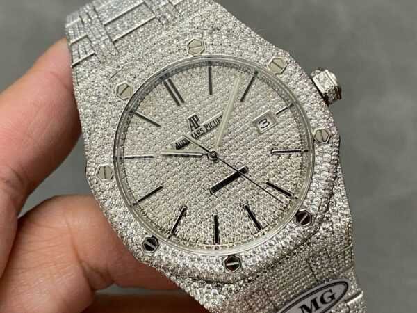 In the world of luxury timepieces, some watches captivate at first glance, radiating an irresistible brilliance. The AP Audemars Piguet Royal Oak 15400 Full Diamond meticulously crafted by AMG Factory, elevates opulence to a whole new level with its exquisite craftsmanship and top-tier diamond setting.
