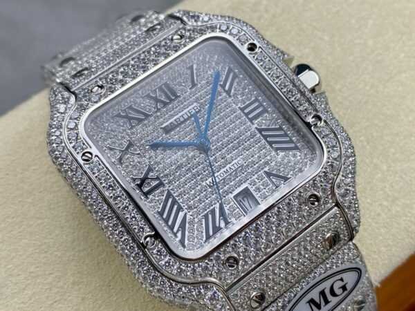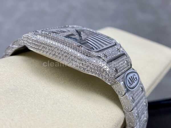 AMG Factory Cartier Full Diamond Santos 40mm Diamond&Steel Roman Number Diamond Dial