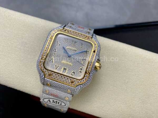 AMG Factory Cartier Full Diamond Santos 40mm Gold Diamond&Steel Arabic Number Diamond Dial