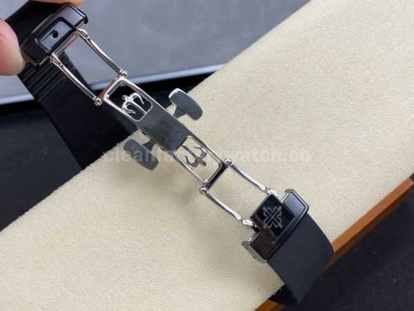 Fitted with a Patek Philippe-style ceramic clasp, showcasing a clean, embossed logo. Elegant, durable, and built to last.