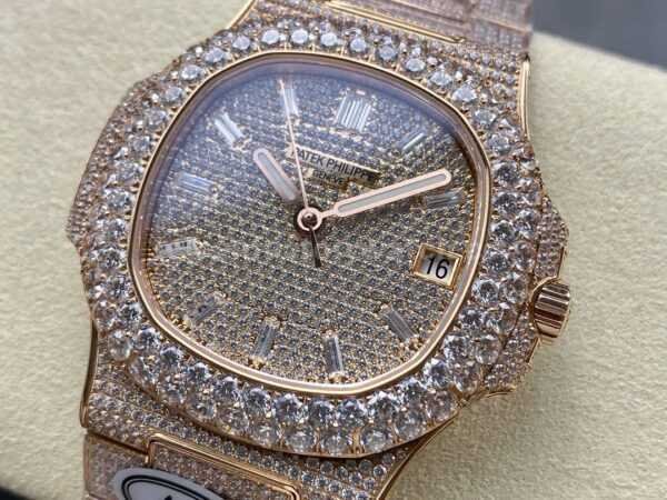 Expertly crafted by AMG, the Patek Philippe Nautilus 5711 full diamond edition now features a dazzling double-row diamond bezel. Merging haute horology with high jewelry aesthetics, this masterpiece exudes refined elegance and exceptional prestige a true symbol of success and taste.