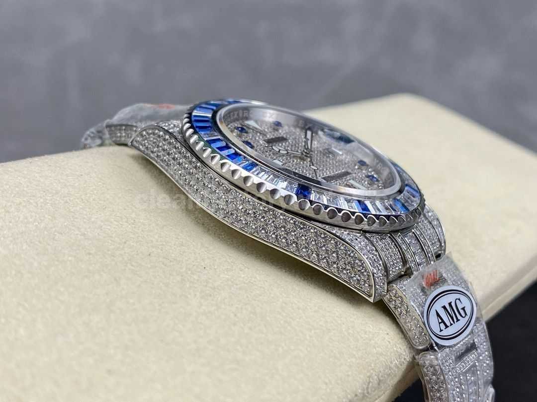 Ultimate luxury, dazzling brilliance! AMG proudly presents this exclusive custom timepiece, meticulously crafted with full diamond embellishment to recreate the opulence of the Rolex Submariner. The entire watch is adorned with top-grade Swarovski diamonds, radiating an exquisite glow that embodies noble prestige. A true symbol of status, this masterpiece allows you to experience high-end horology at an exceptional value!