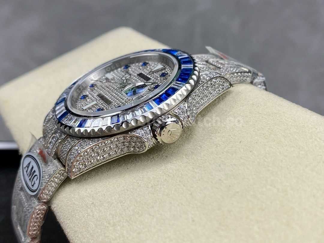 AMG Factory Rolex Submariner Date 116610 40mm Blue White Diamond Bezel Full 904L Diamond Blue Word Pin Diamond Dial