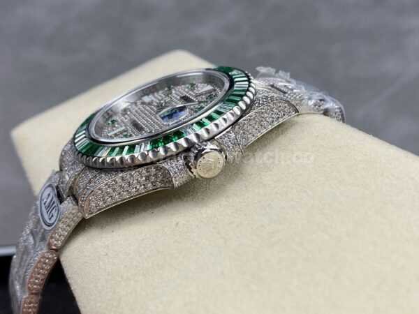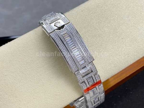 Diamond Setting: The bezel, case, and bracelet are meticulously encrusted with top-grade Swarovski diamonds, reflecting stunning brilliance from every angle.