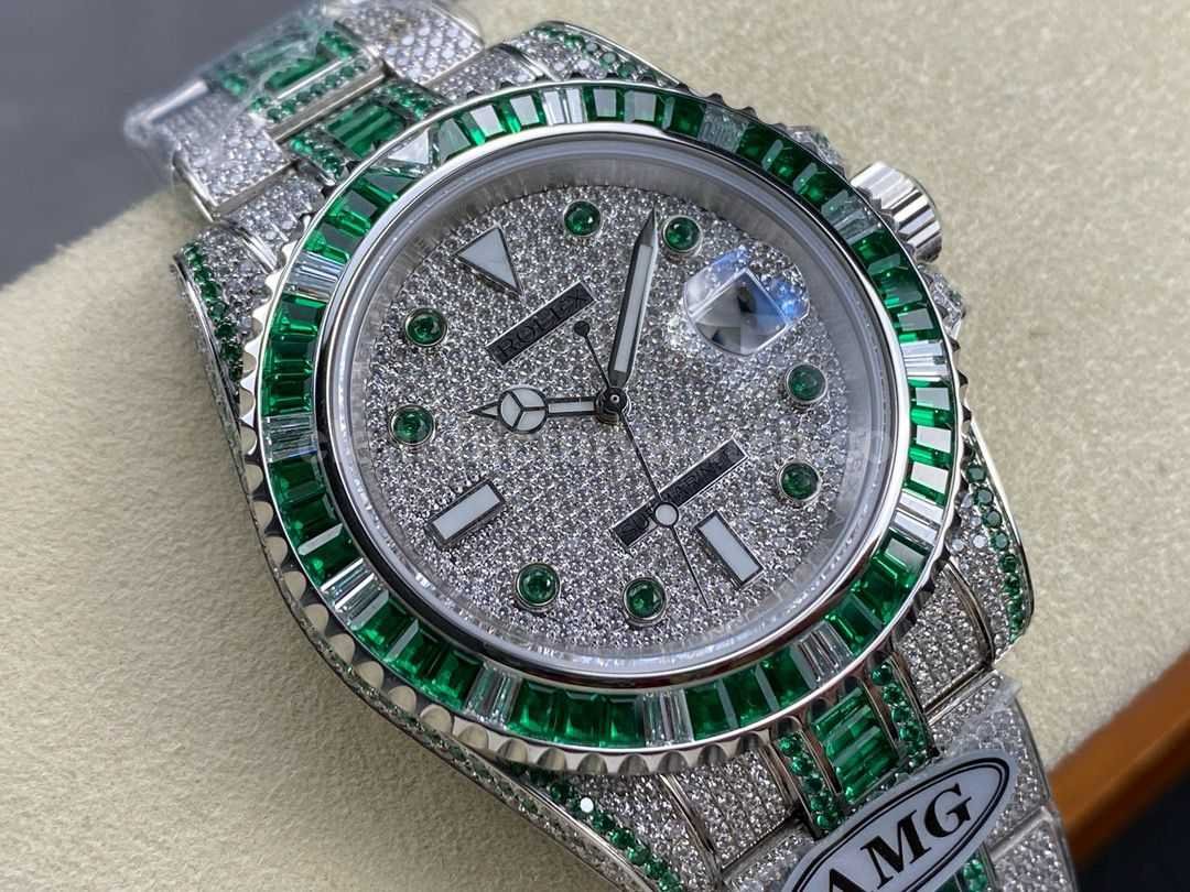 AMG Factory Rolex Submariner Date 116610 40mm Green White Diamond Bezel Full 904L Green Diamond Green Word Pin Diamond Dial