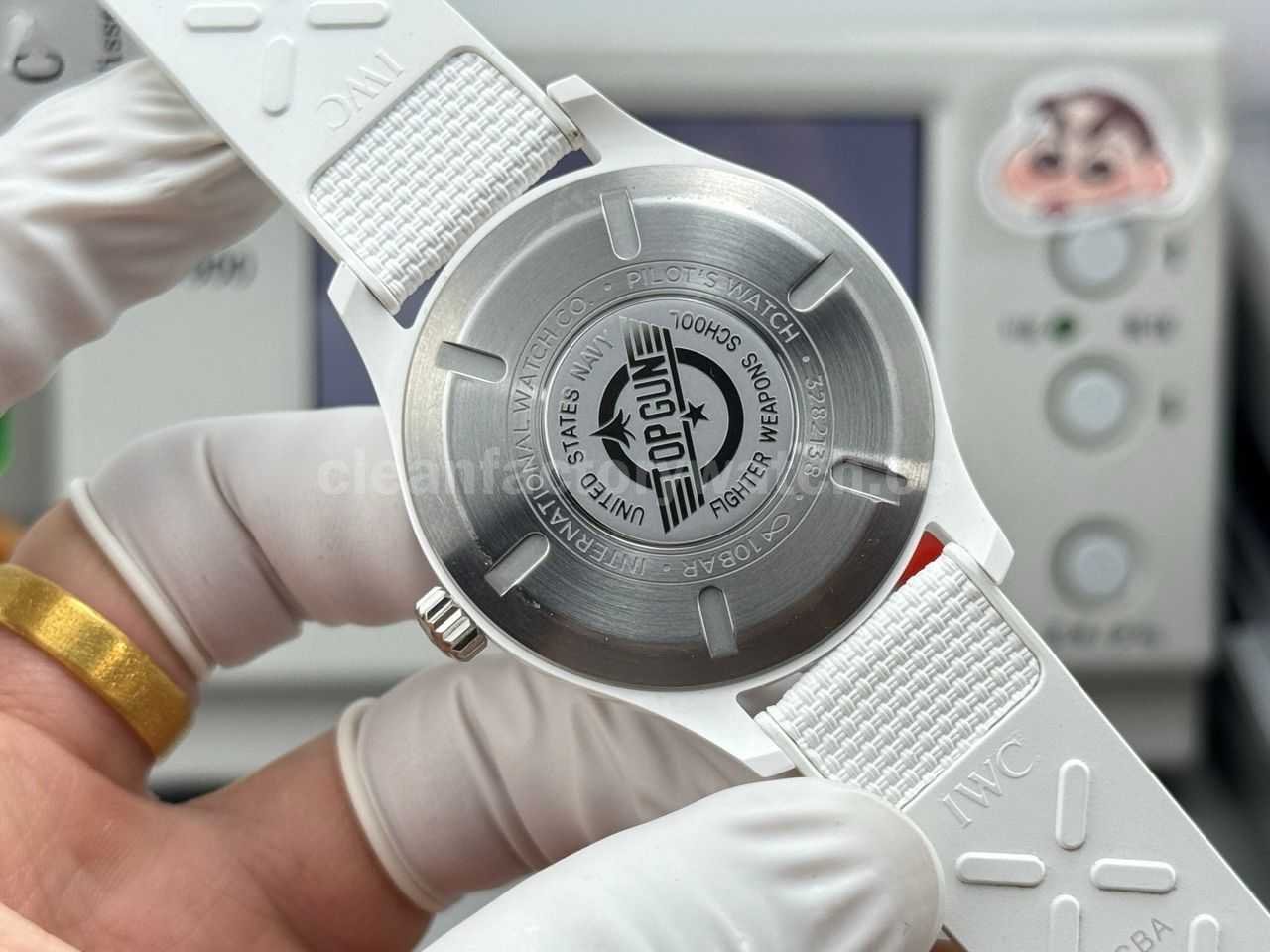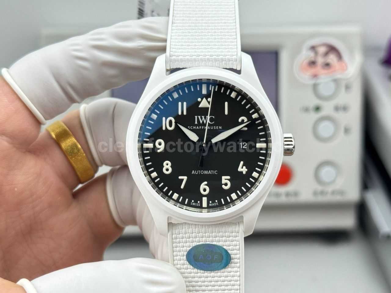 AOF Factory IWC Pilot Top Gun Lake Tahoe IW328104 41mm Ceramic Textile Strap Black Dial