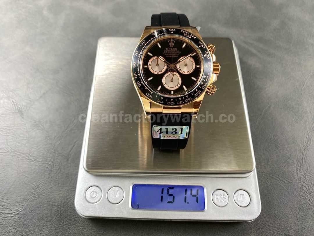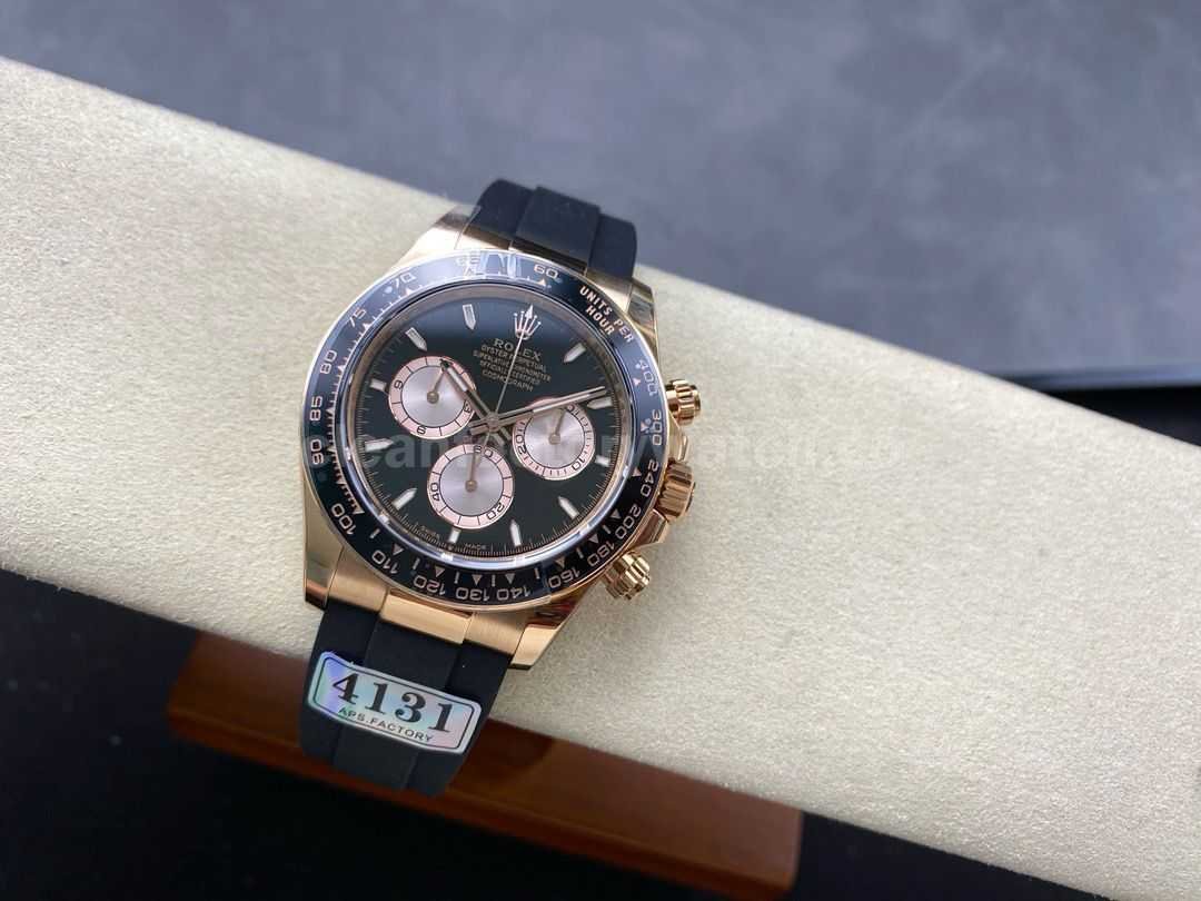 APS Factory Counterweight Rolex Daytona 126515LN-0002 40MM Rose Gold Rubber Strap Black Dial
