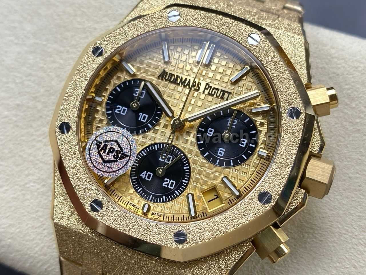 APS Factory Frosted Audemars Piguet Royal Oak Chronograph 26240BA.GG.1324BA.01 41mm Full Frosted Yellow Gold Black Eye Yellow Gold Dial