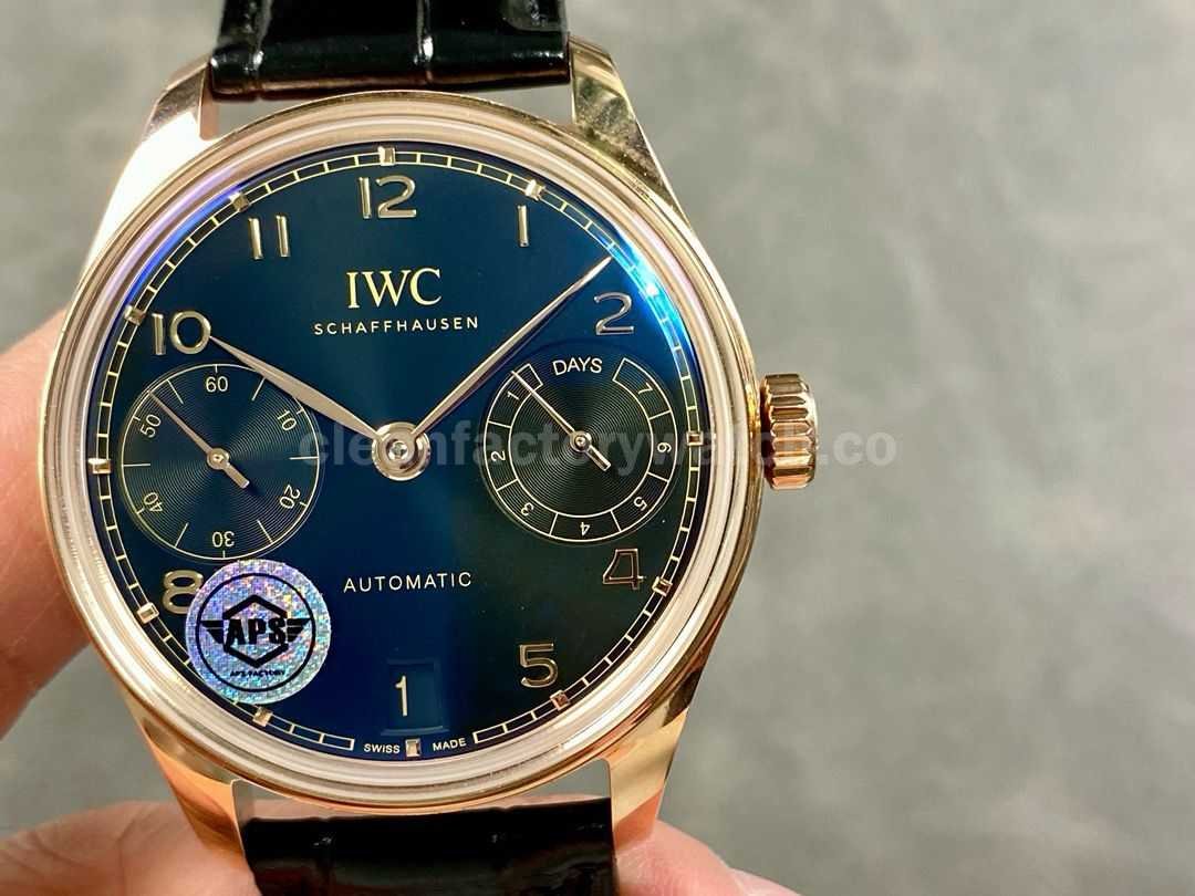 APS Factory IWC Portuguese IW500713 42.4mm Rose Gold Leather Strap Blue Dial