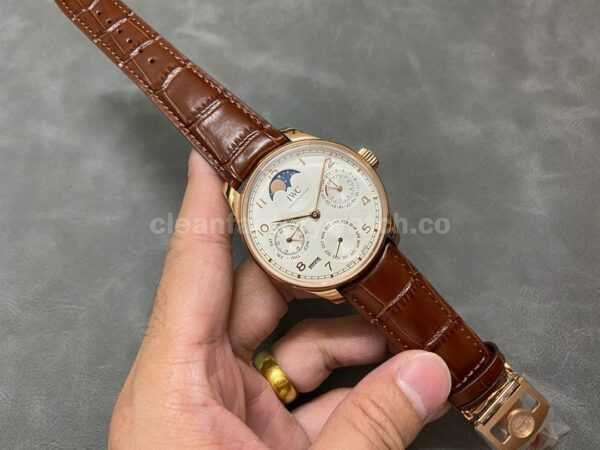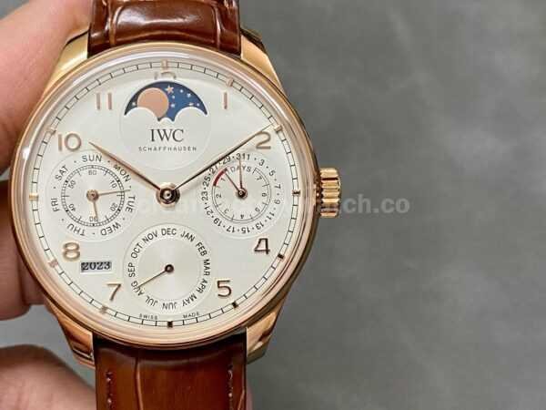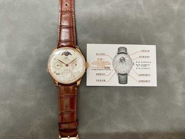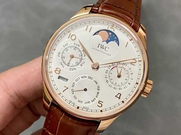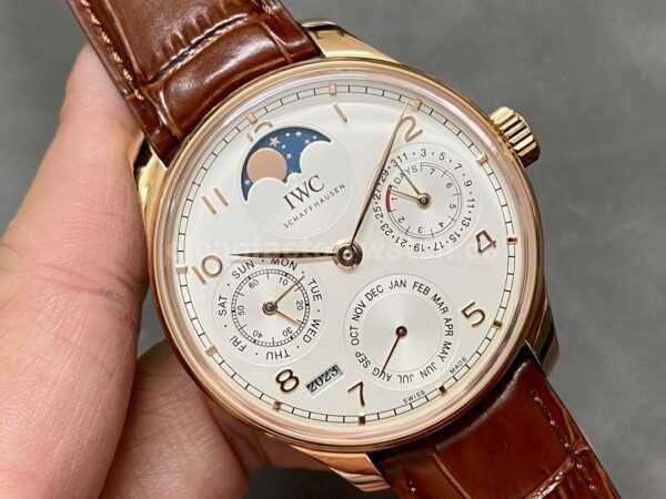 APS Factory IWC Portuguese Perpetual Calendar IW502302 44mm Rose Gold Leather Strap Arabic Numerals Silver Dial