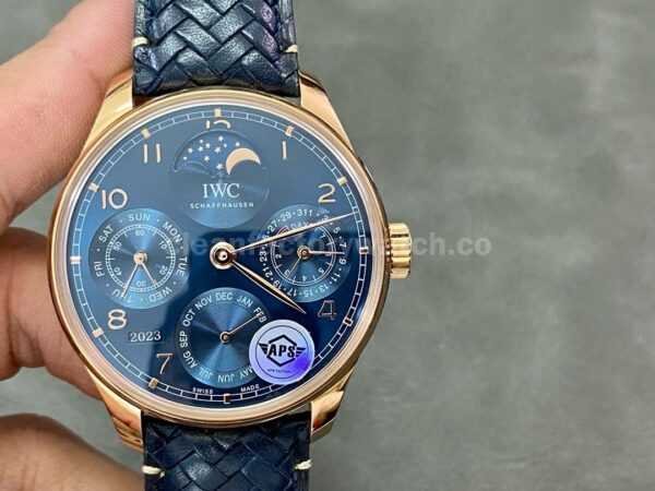 APS Factory IWC Portuguese Perpetual Calendar IW503312 Boutique Edition 44mm Rose Gold Leather Strap Arabic Numerals Blue Dial
