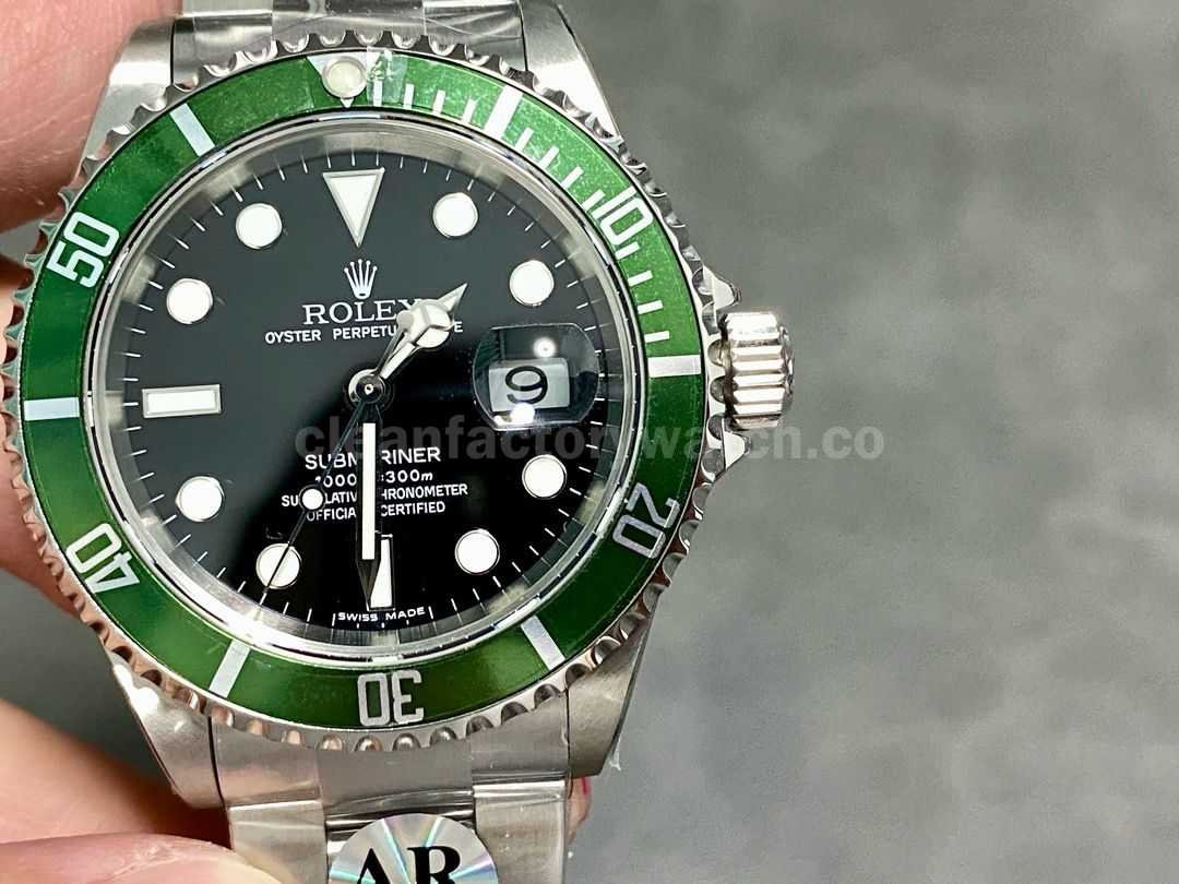 1.The aluminum bezel of the vintage Submariner is identical to the original, made from assembled and pressed parts. The genuine green bezel varies between flat-topped and pointed depending on the era and version, with distinctions in the shade of green. AR replica aims to match the original precisely, even allowing for interchangeable parts with the authentic version.