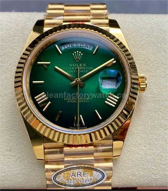 ARF Factory Counterweight Rolex Day-Date 228238-0061 40mm Full Yellow Gold Roman Numerals Green Dial