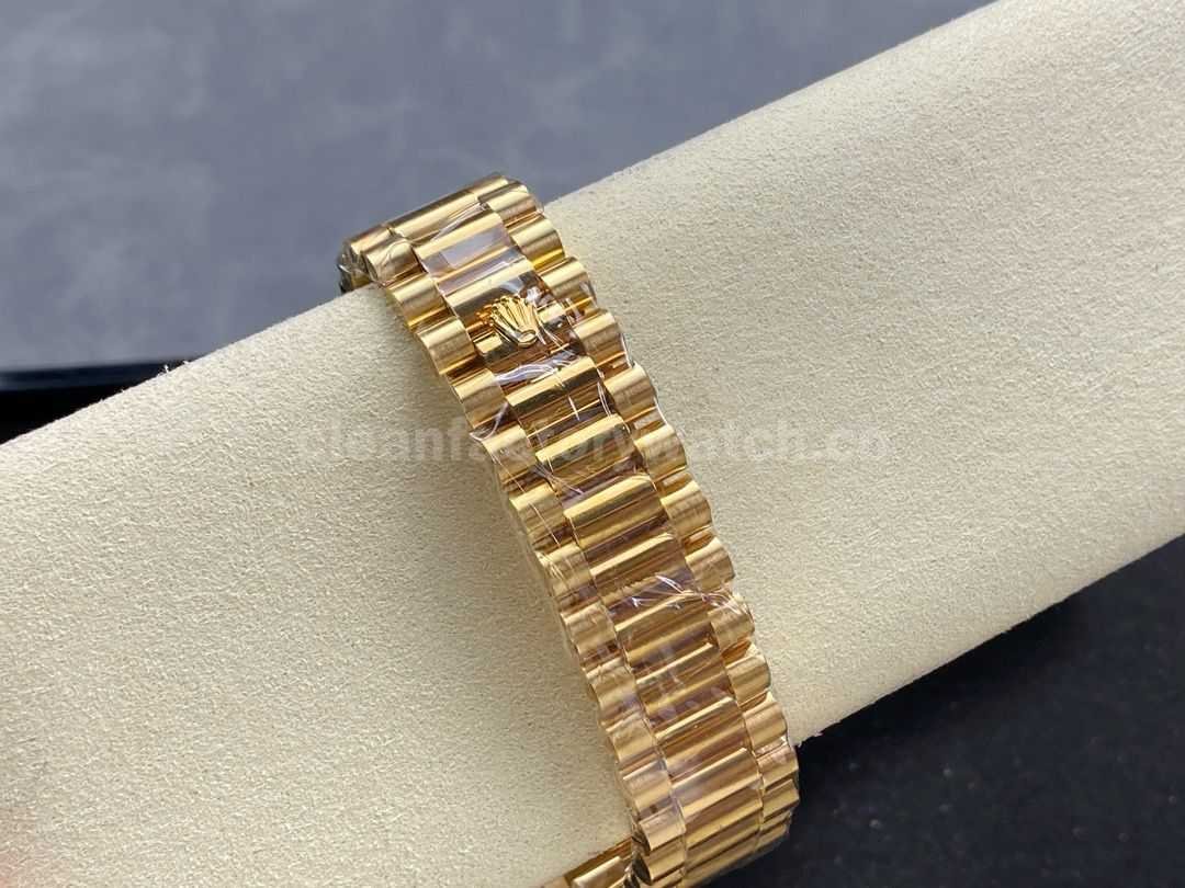 As a must-have classic for every Rolex enthusiast, the ARF advanced replica of the DD (Day-Date) has arrived! This watch features the 3255 integrated movement, fully consistent with the original, not the common 2834 movement found in the market. After days of meticulous refinement, every detail has been perfected — from the case thickness, dial markers, T-diamonds or Roman numerals, to the curvature and deburring of the hands, as well as the dimensions of bracelet components and the plating color — all have been repeatedly adjusted to achieve a true 1:1 replication of the original essence.