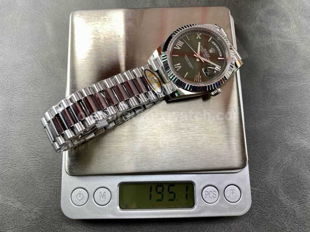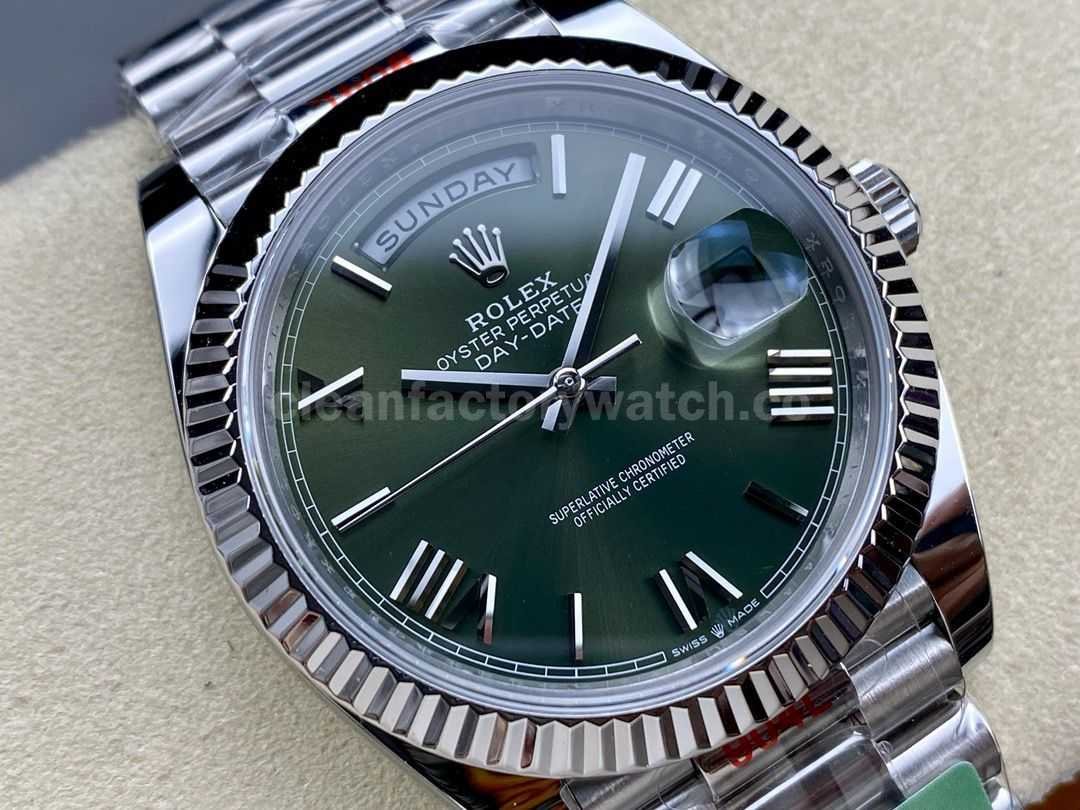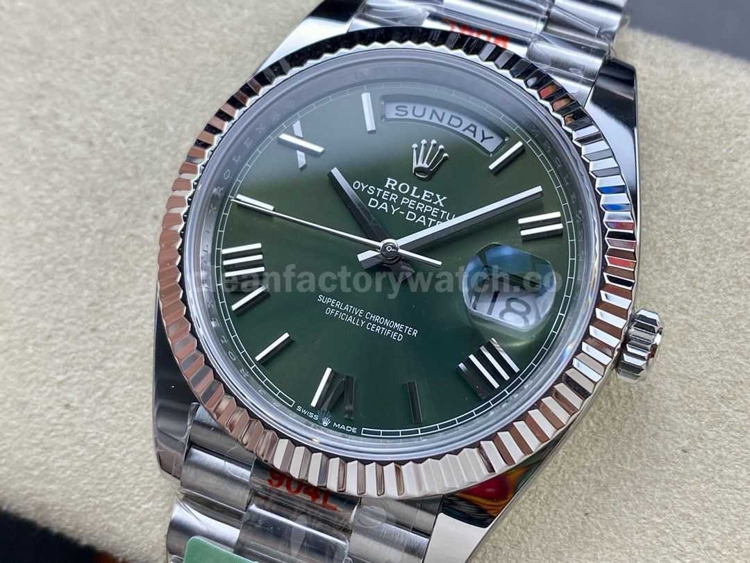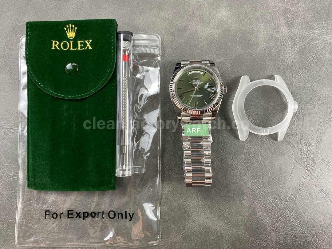 ARF Factory Counterweight Rolex Day-Date 228239-0033 40mm White Gold Roman Numerals Olive Green Dial