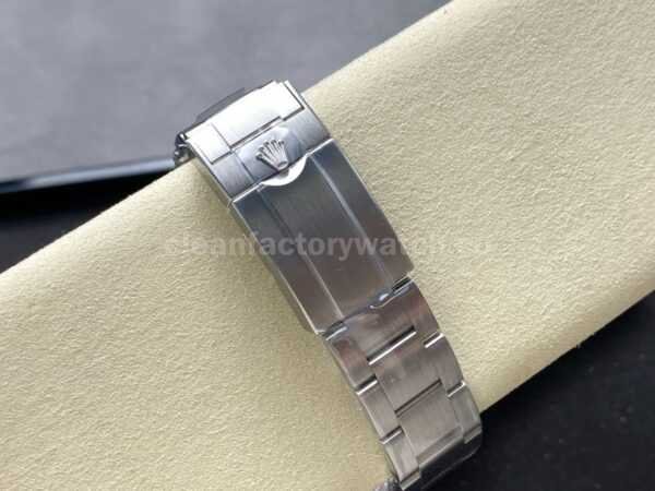 The 904L stainless steel bracelet is designed for a comfortable fit, with well-crafted links that conform to the wrist. The folding clasp is secure and user-friendly, featuring the Rolex logo for an added touch of sophistication.