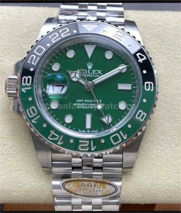 Meticulously crafted by the ARF Factory, this replica of the Rolex GMT-Master II has earned unanimous praise from watch enthusiasts for its exceptional fidelity and superb craftsmanship. From the seamless transition of the bezel, to the intricately built integrated 3285 movement, and the finely detailed new precious metal clasp — every aspect showcases ARF’s uncompromising pursuit of quality.