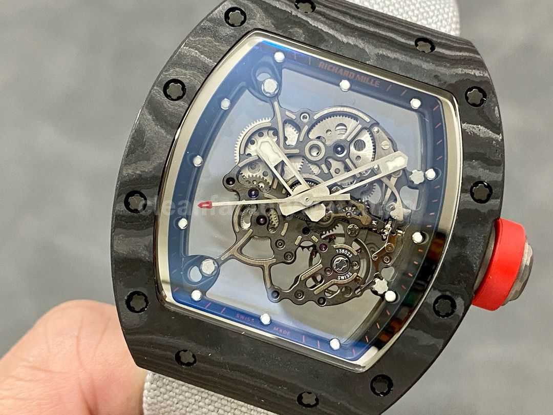 With its feather-light weight, visually authentic skeletonized movement, and limited-edition racing theme, the RM055 V4 Upgrade is a must-have for serious replica collectors and Richard Mille enthusiasts alike.