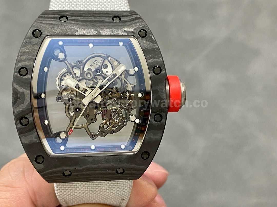 BBR Factory Richard Mille RM055 Black Carbon Fiber White Canvas Strap Silver Skeletonized Dial