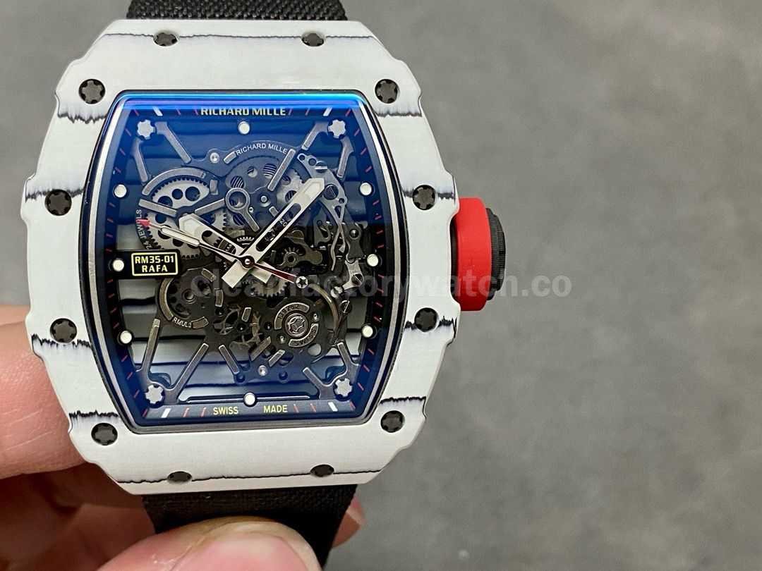 BBR Factory Richard Mille RM35-01 White Carbon Fiber Black Canvas Strap Black Skeletonized