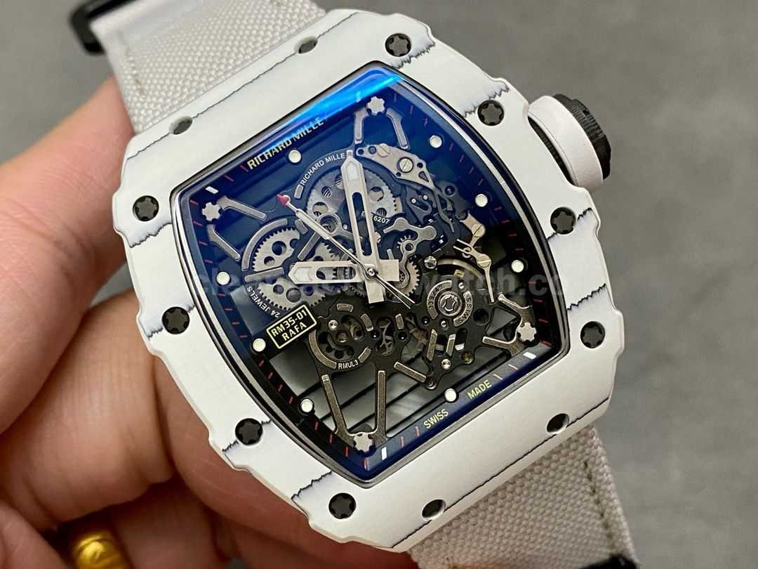 BBR Factory Richard Mille RM35-01 White Carbon Fiber White Canvas Strap White Skeletonized