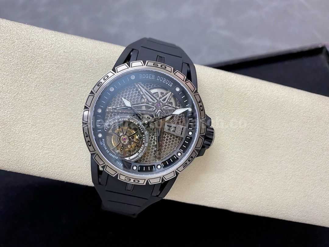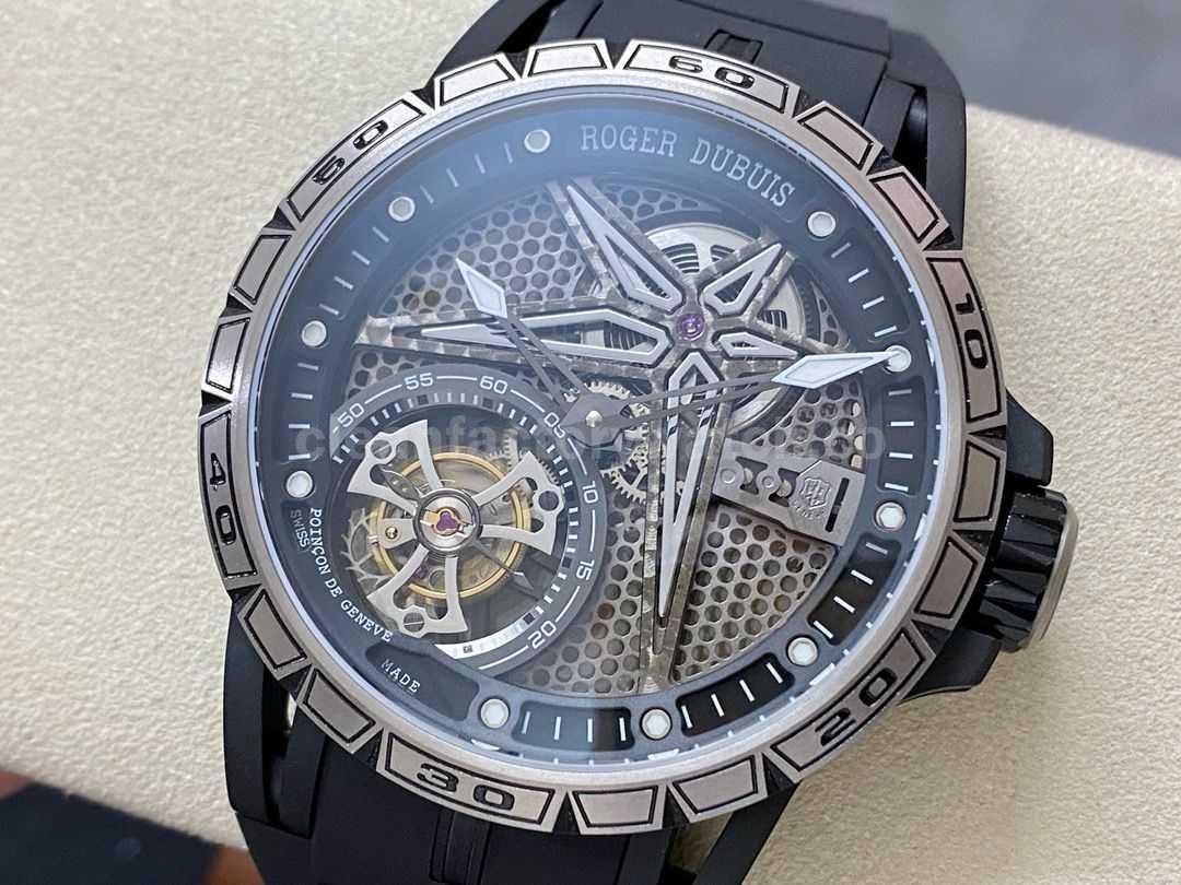 BBR Factory Roger Dubuis Tourbillon Excalibur RDDBEX0815 45mm Titanium Rubber Strap Skeletonized Black Dial