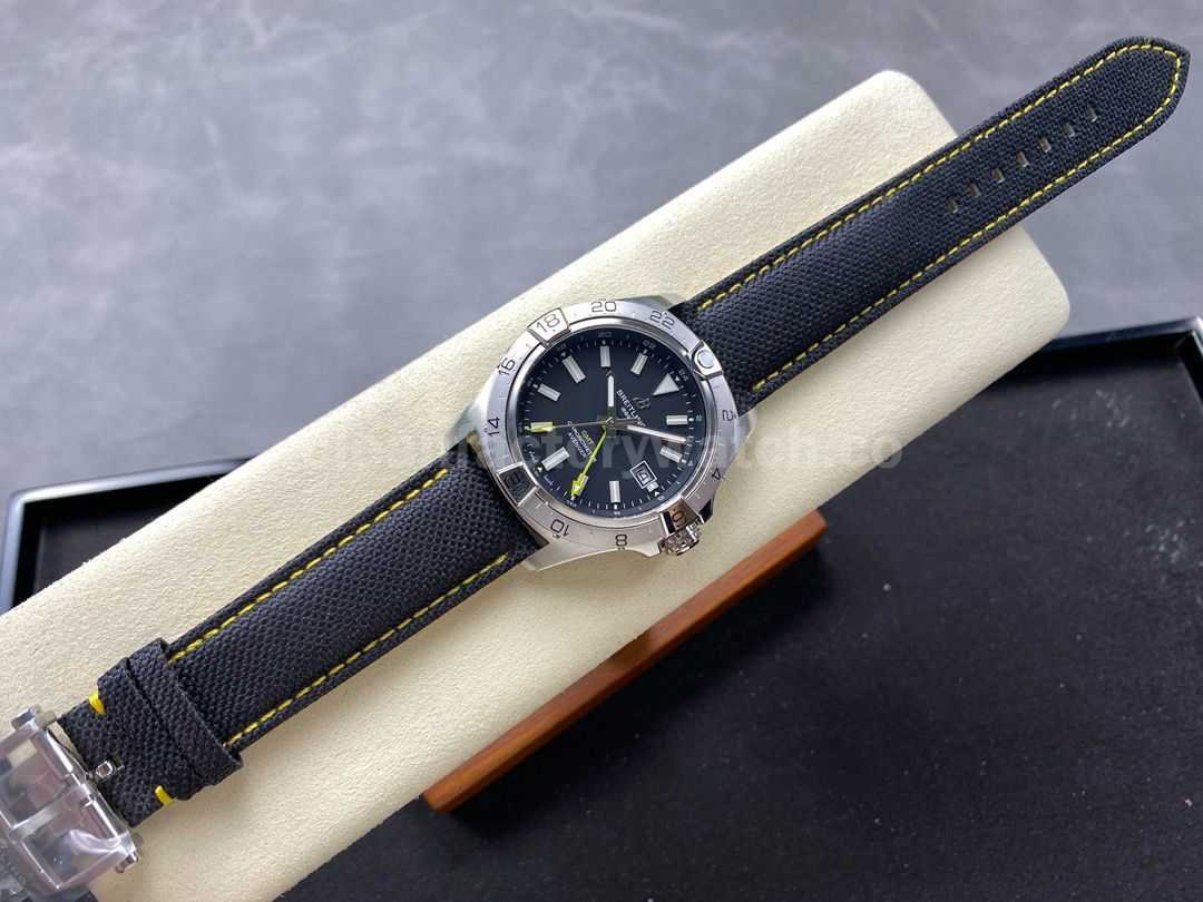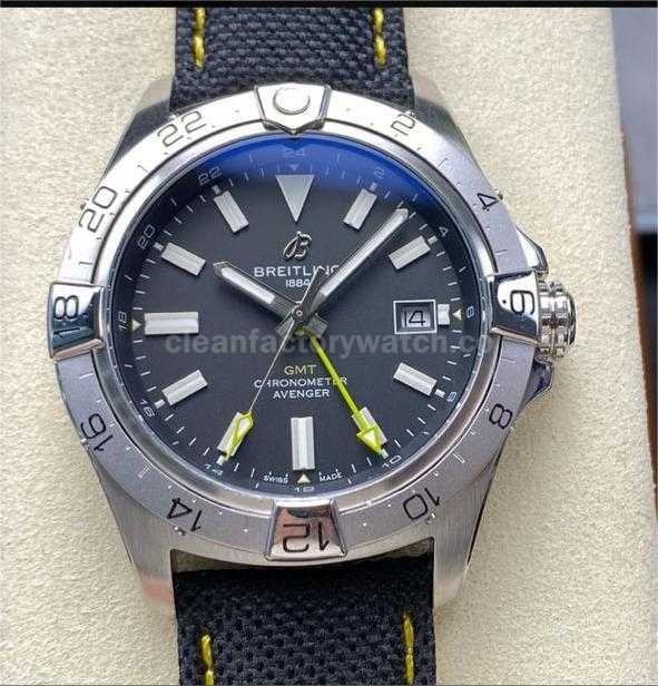 BLS Factory Breitling Avenger A323201A1B1X1 44mm Steel Calf Skin Strap Yellow GMT Needle Black Dial