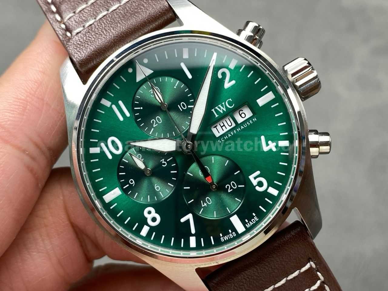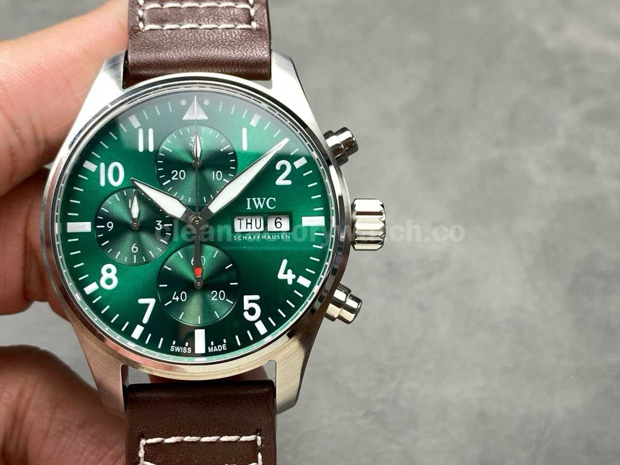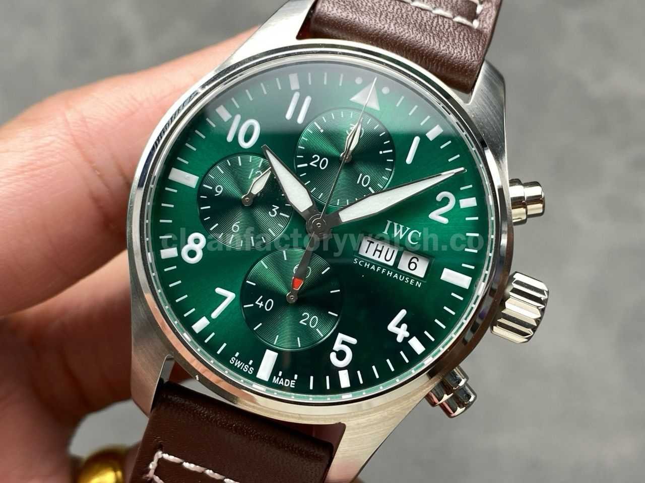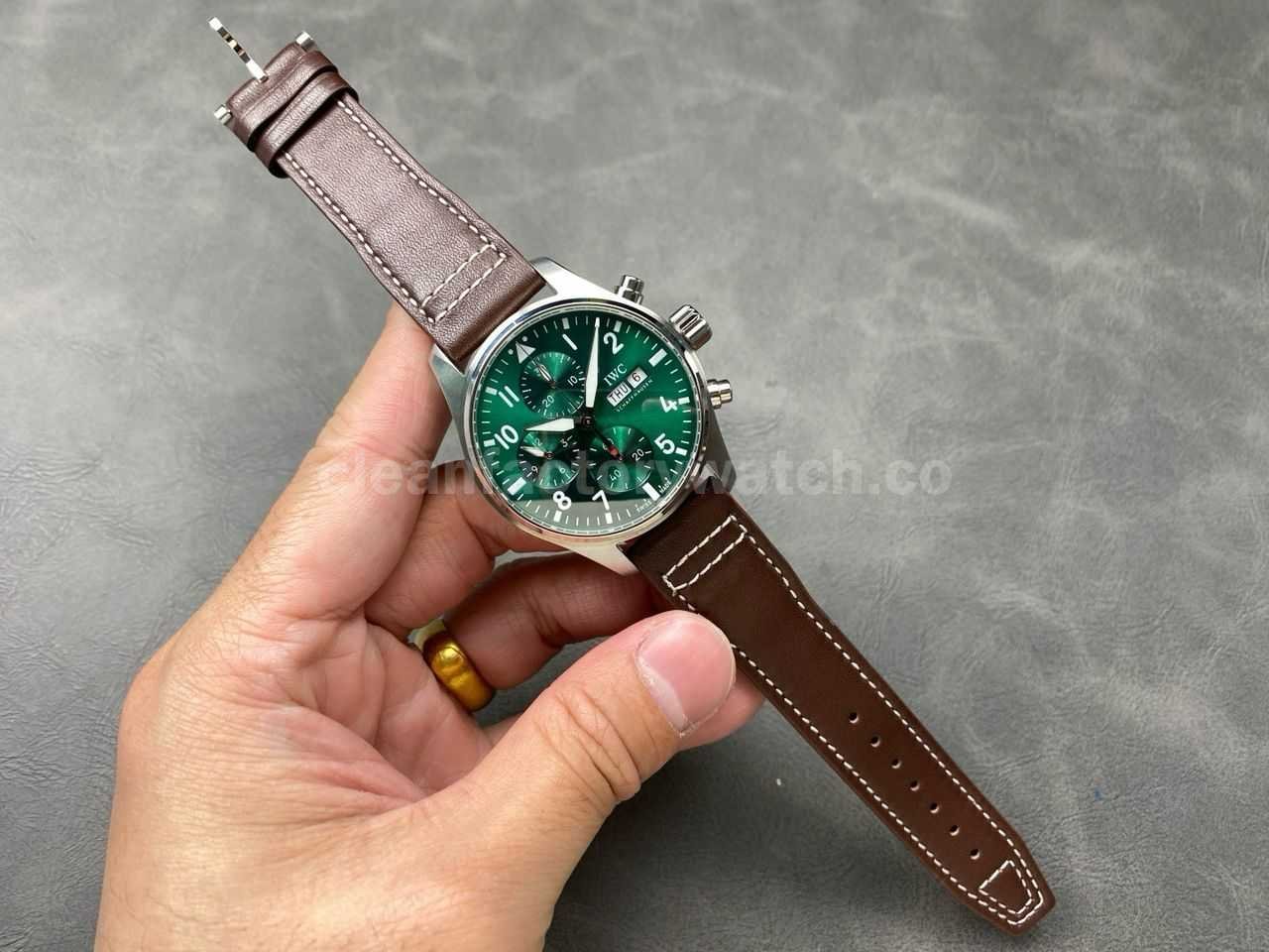BLS Factory IWC Pilot Chronograph IW388103 41mm Steel Leather Strap Arabic Numerals Green Dial