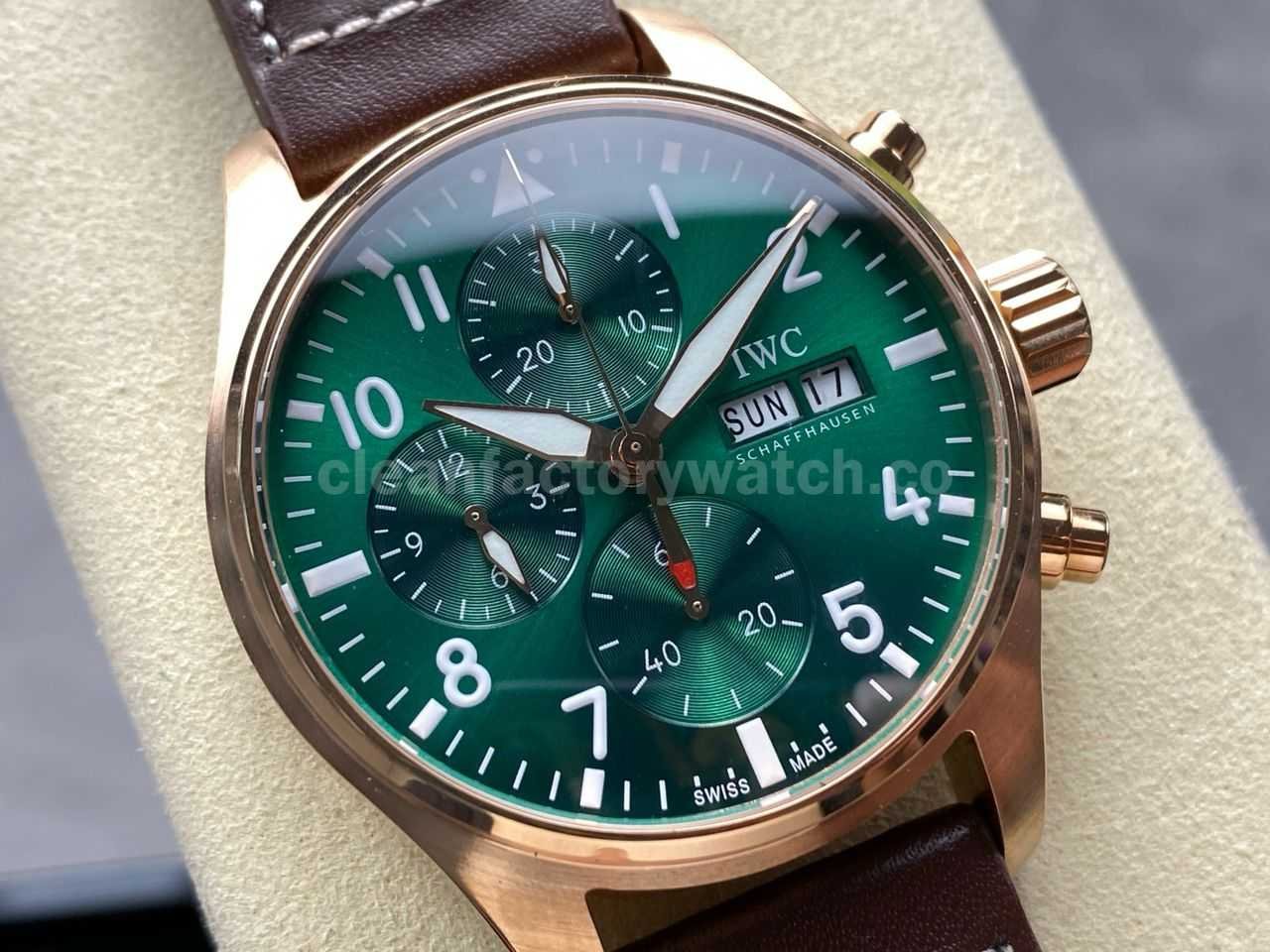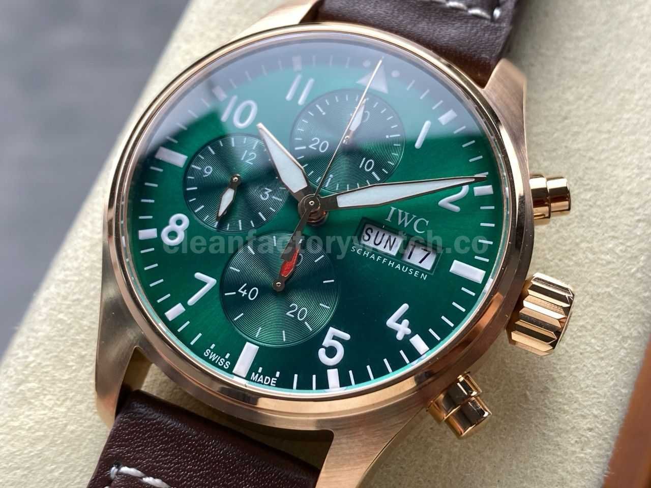 BLS Factory IWC Pilot Chronograph IW388110 41mm Leather Strap Green Dial