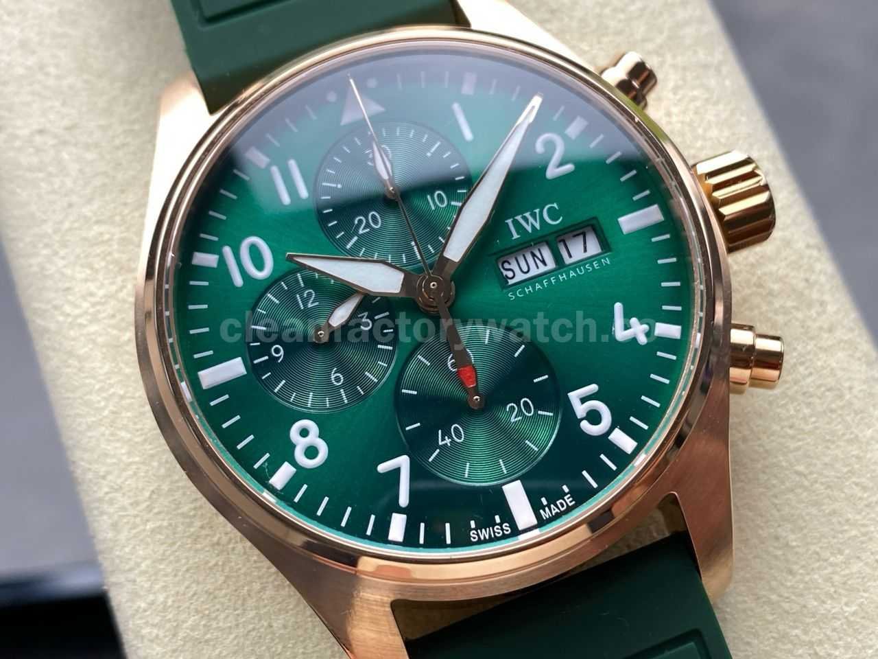 BLS Factory IWC Pilot Chronograph IW388110 41mm Rubber Strap Green Dial