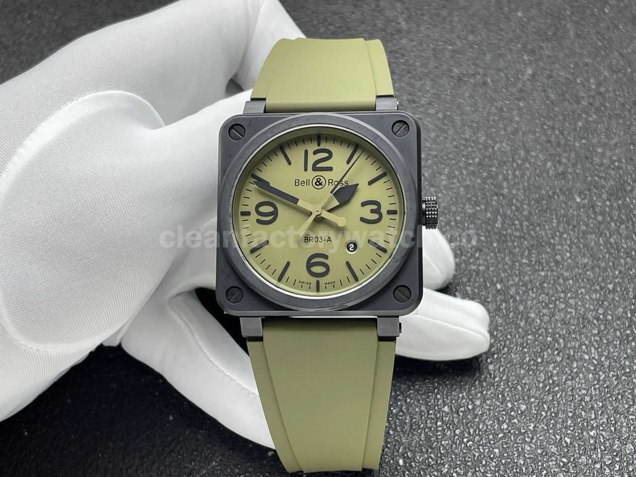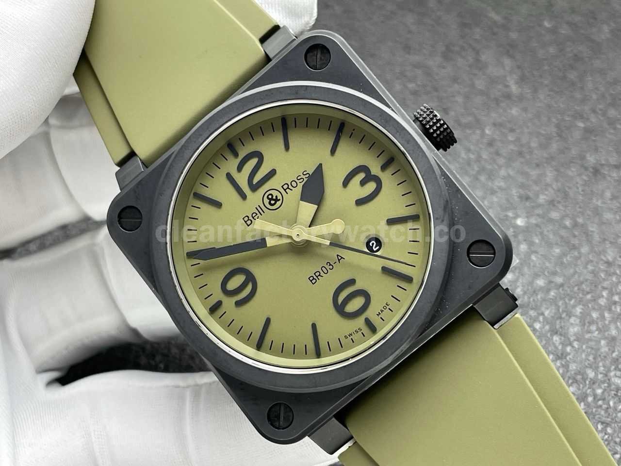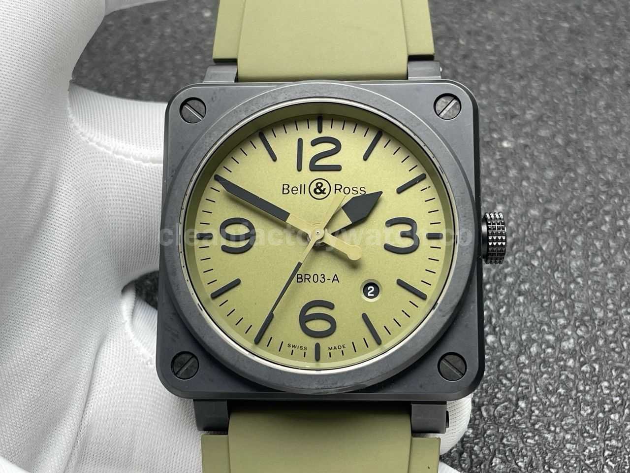 BRF Factory Bell & Ross BR 03 BR03A-MIL-CESRB 42mm Ceramic Rubber Strap Green Dial