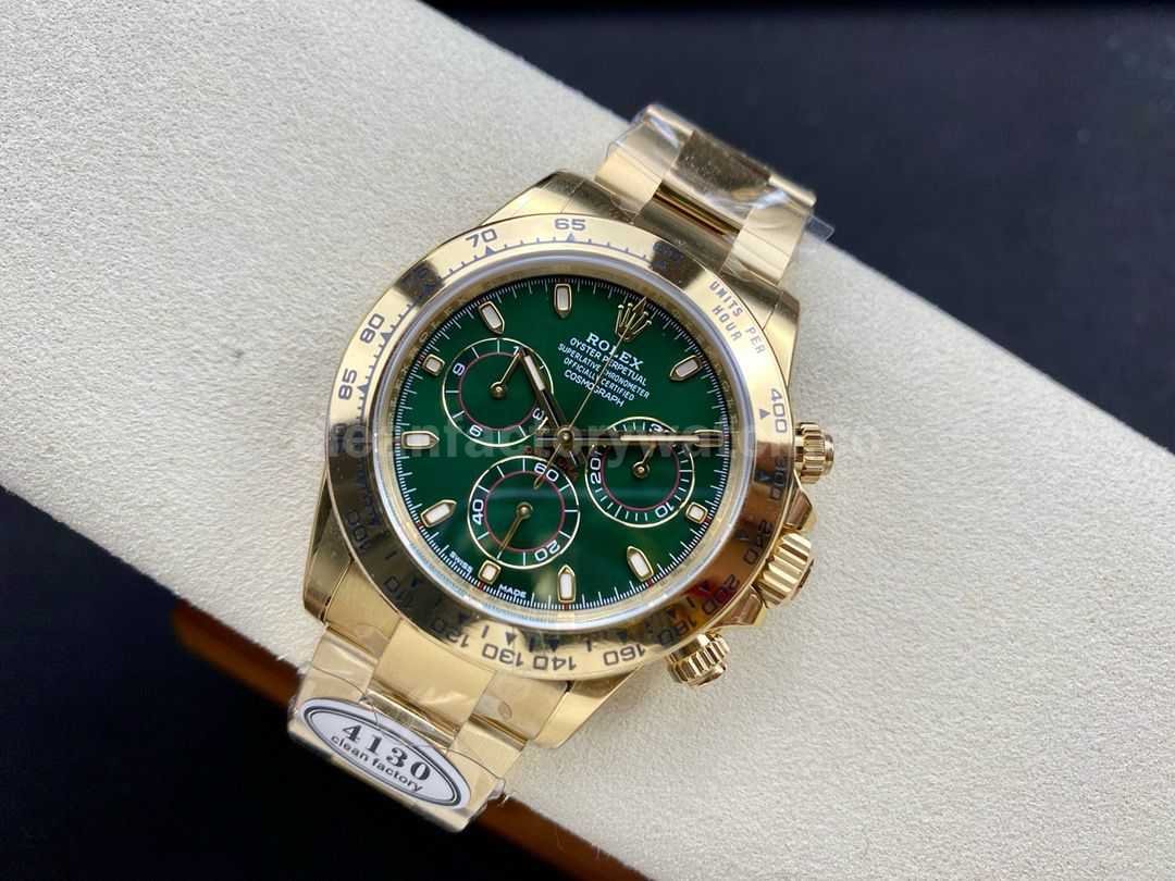 Inside, the watch houses the 4131 integrated chronograph movement developed by Clean Factory. The movement layout, balance wheel position, and screw arrangement faithfully replicate Rolex specifications. It ensures stable timekeeping, smooth chronograph operation, and precise reset to zero – closely matching the genuine performance.