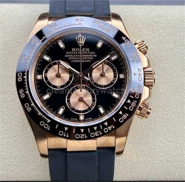 The Clean Factory Rolex Daytona 116519LN is one of the finest 1:1 super clones available today. Featuring a 904L stainless steel case, black Cerachrom ceramic bezel, sunburst gray dial, and Oysterflex rubber strap, it is powered by the integrated Cal.4130 movement. Every detail has been meticulously replicated to match the genuine Rolex Daytona.