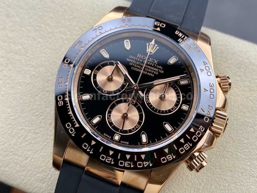 Clean Factory Rolex Daytona 116515LN-0012 40MM Rose Gold Rubber Strap Black Dial