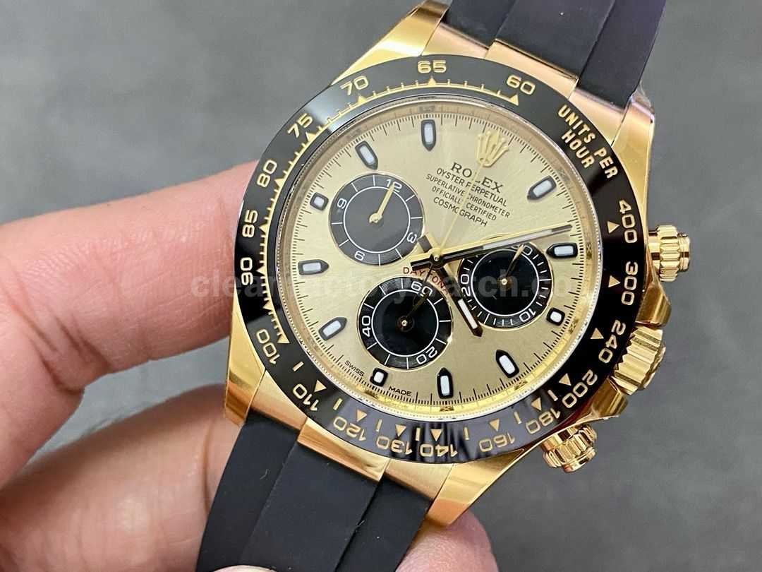 The Clean Factory Rolex Daytona 116518LN replica is the ultimate combination of luxury, precision, and comfort. With its 18K gold case, black ceramic bezel, and Oysterflex strap, it delivers the same prestige as the original. For enthusiasts seeking the best Daytona super clone on the market, the Clean Factory 116518LN stands out as a premium choice.