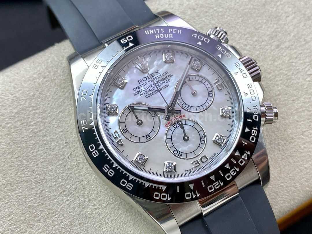 Clean Factory Rolex Daytona 116519LN-0026 40MM White Gold Rubber Strap Diamond Mop Mother Of Pearl Dial