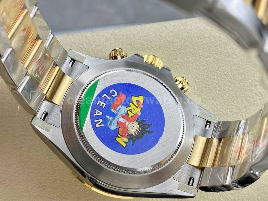 Equipped with Clean Factory’s custom 4130 integrated movement, this model replicates the functions of the genuine Rolex Daytona. The chronograph function operates smoothly, while the movement itself is finely decorated, stable, and accurate—delivering both reliability and an authentic mechanical feel.