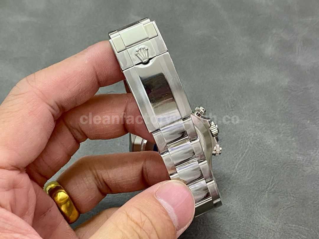 Powered by Clean Factory’s custom 4131 integrated movement, the structure and appearance are highly faithful to the genuine Rolex. The balance wheel position and bridge layout are consistent with the original. It delivers stable timekeeping and fully functional chronograph performance, making it both reliable and visually impressive.