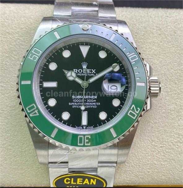 This latest model from Clean Factory features a true 41mm size, identical to the original. The four lugs are smaller, and the bracelet and clasp are widened. The dial now includes a crown logo between the Γ’ΒΒSWISS MADEΓ’Β?text at the 6 oΓ’ΒΒclock position. The ceramic bezel is crafted with a platinum scale that resists fading. The perfected green Submariner bezel from Clean Factory is a must-have.