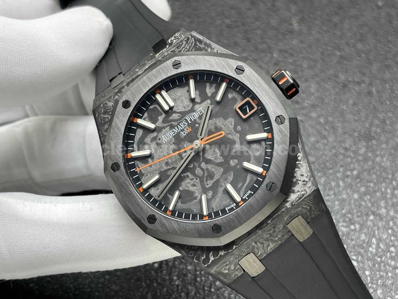DIW Factory Audemars Piguet Royal Oak 15500 VOIDLINE 41mm Carbon Fiber Orange Line Rubber Strap Black Dial